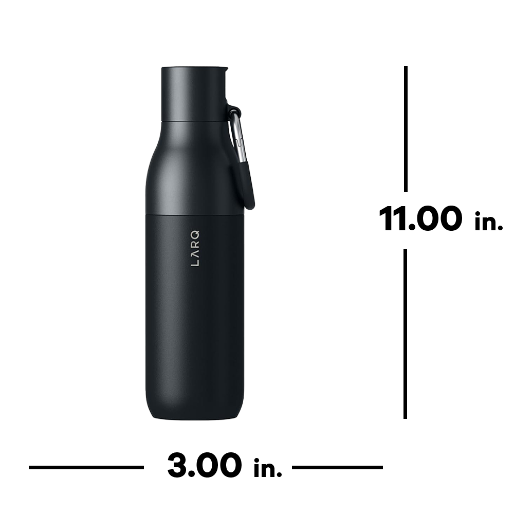 The LARQ Bottle Twist Top is constructed with double-wall vacuum insulated stainless steel that will keep water ice cold for 24 hours and hot for 12. Enjoy spill-free filtered sips with the flip-top Essential Bottle Filter straw lid. The removable Essential Bottle Filter removes lead, PFOS/PFOA, chlorine, heavy metals and more.Comfortably carry your bottle anywhere with the silicone-coated detachable carabiner. Showcase your clients logo against the sleek semi-matte powder-coat finish in crisp laser engraving or vibrant color print.